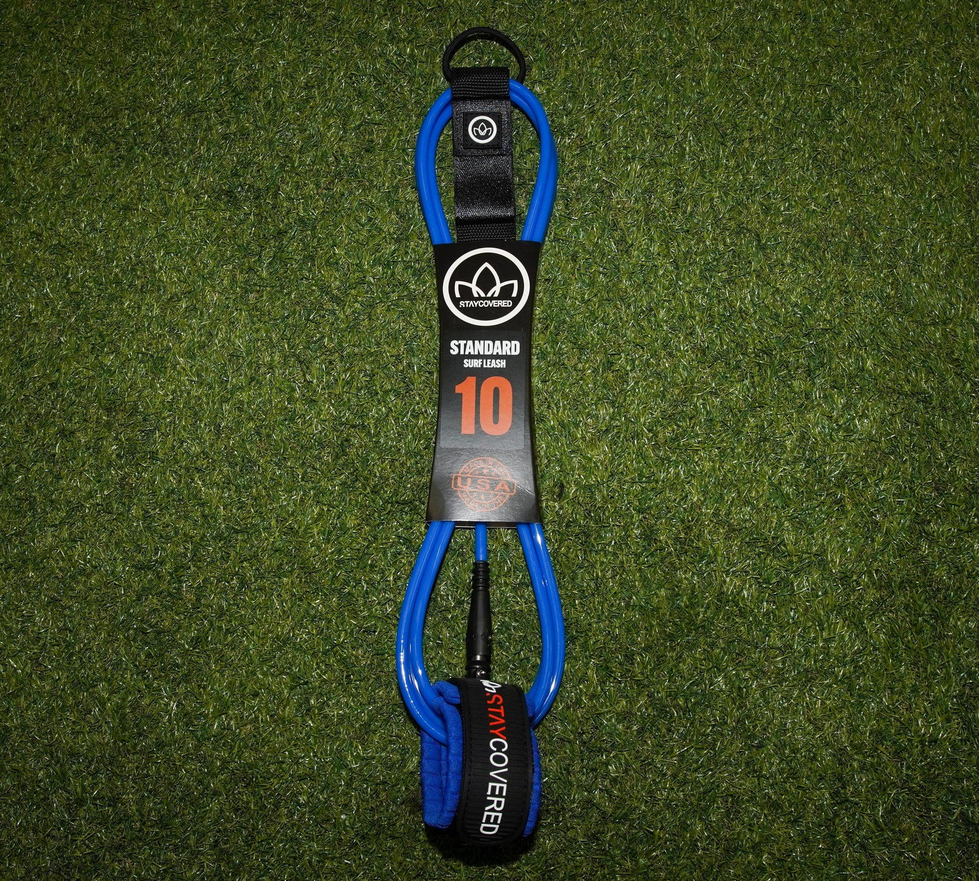 The Stay Covered 10ft Standard Leash is built for strength and reliability on bigger boards. Featuring a 7mm heavy-duty urethane cord, it provides secure hold in medium to solid surf. A padded neoprene cuff, double stainless steel swivels, and a reinforced rail saver deliver comfort, tangle-free performance, and long-lasting board protection. Perfect for longboards and stand-up paddleboards