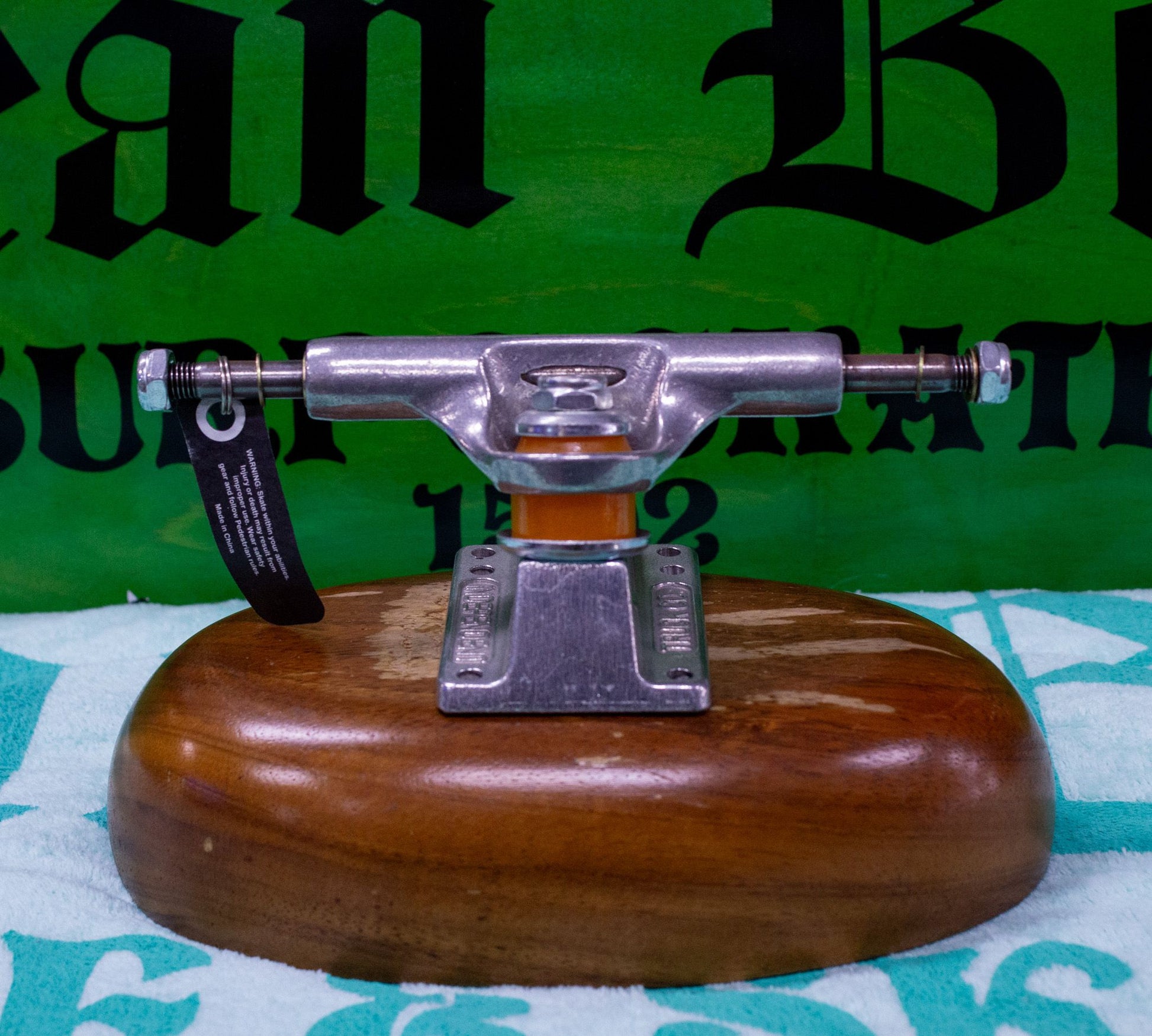 Independent’s Stage 11 Standard Trucks are built for all-around skate performance. With a 55 mm height, they provide ideal wheel clearance for wheels 56 mm and under. The A356 T6 heat-treated aluminum hanger and baseplate offer strength and longevity, while the SCM435 chromoly steel axle handles heavy-duty skating. A Grade 8 kingpin ensures resilience—you won’t bend or break it easily. Stocked with 90a cushions, these trucks deliver responsive turning and dependable control