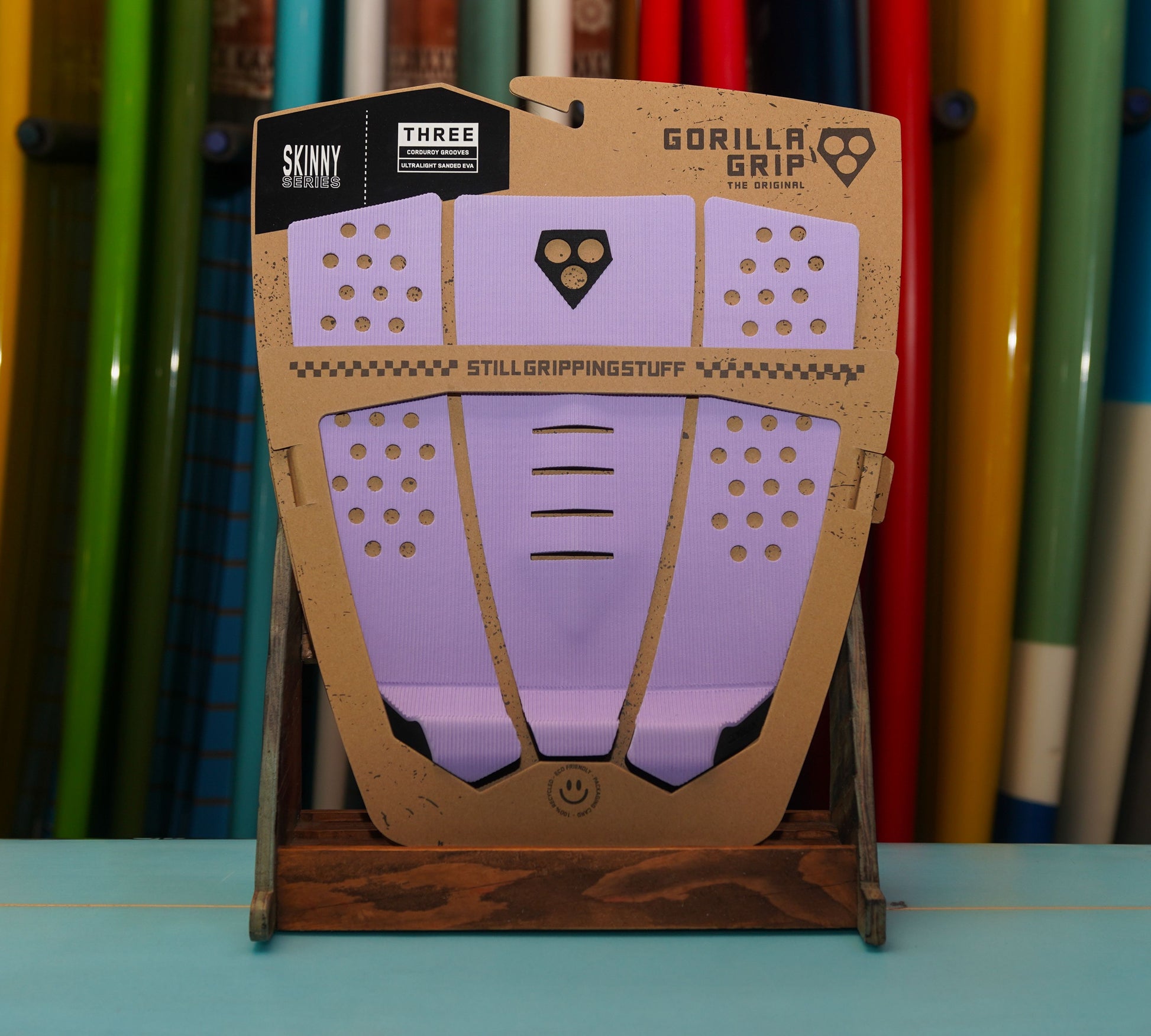 The FCS Gorilla Grip Skinny Series Pad delivers lightweight traction with a sleek, low-profile feel. Featuring a 3-piece design, custom groove pattern, and high tail kick, it provides maximum grip and control without extra bulk. Perfect for surfers who want responsive board feel and dependable traction session after session.