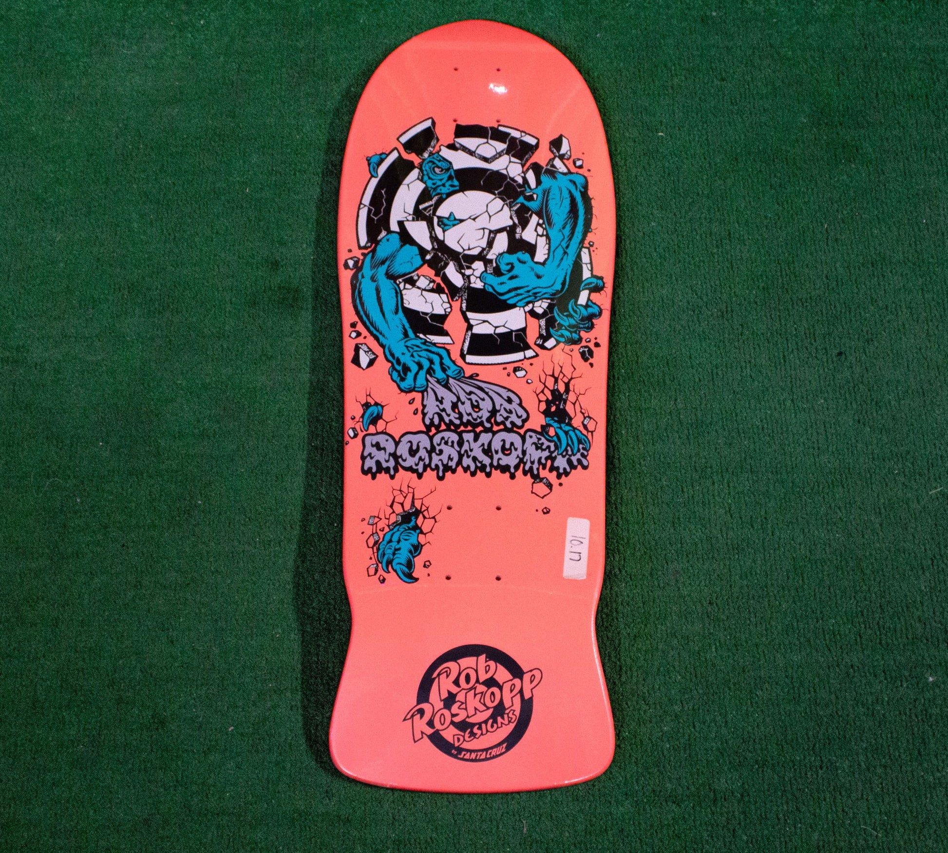 The Santa Cruz Roskopp Three Reissue Deck is built from 7‑ply maple and features the classic Roskopp wide‑body shape with a slightly tapered nose and tail. Measuring around 10 inches wide, it provides a stable platform ideal for pool, vert, and cruising, while still allowing responsive control for carving. The deck uses a medium concave and showcases the iconic Roskopp Three graphic on the underside, combining vintage aesthetics with durable, modern deck construction.