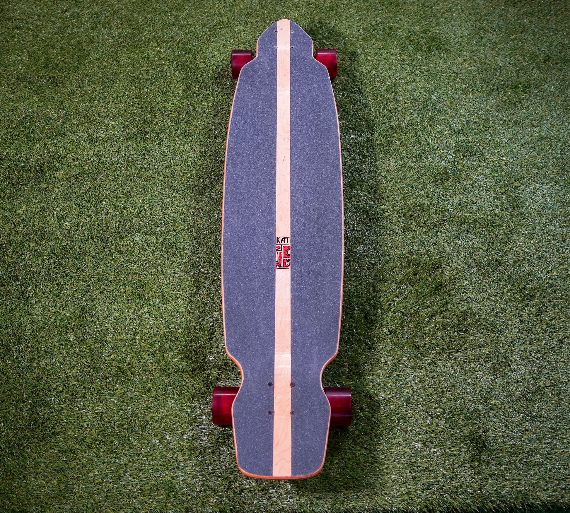 Gravity 45" x 10.5" Big Kick Tiki Girl Deck. Sector 9 72mm x 75a Wheels. Abec 7 Bearings. Truck Co Reverse Kingpin 9" Trucks.