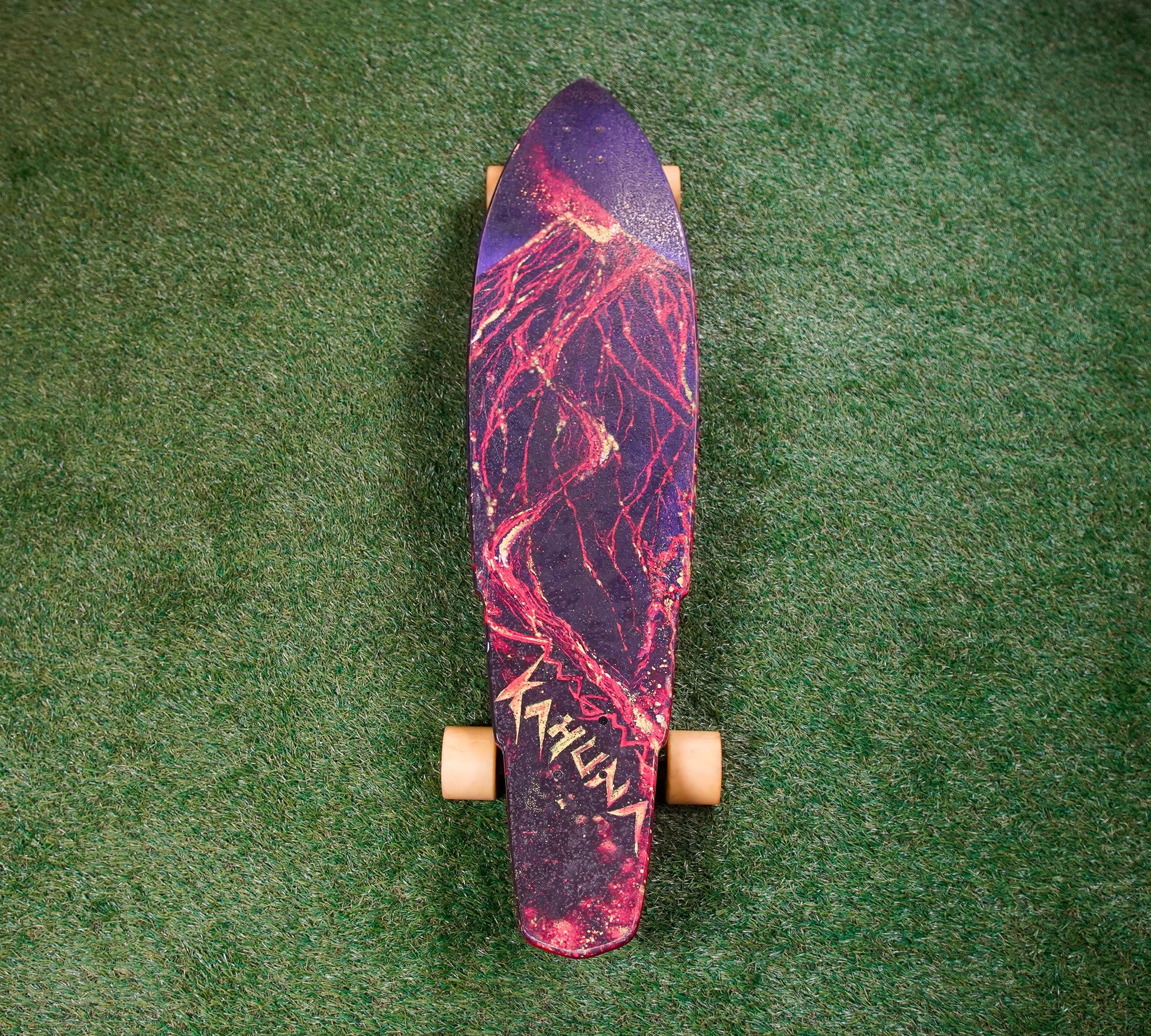 Kahuna 44" x 10" Volcano Deck with Volcanic Sand Grip. Black 75mm x 78a Wheels. Bones Reds Bearings. 9" Caliber Reverse Kingpin Trucks.