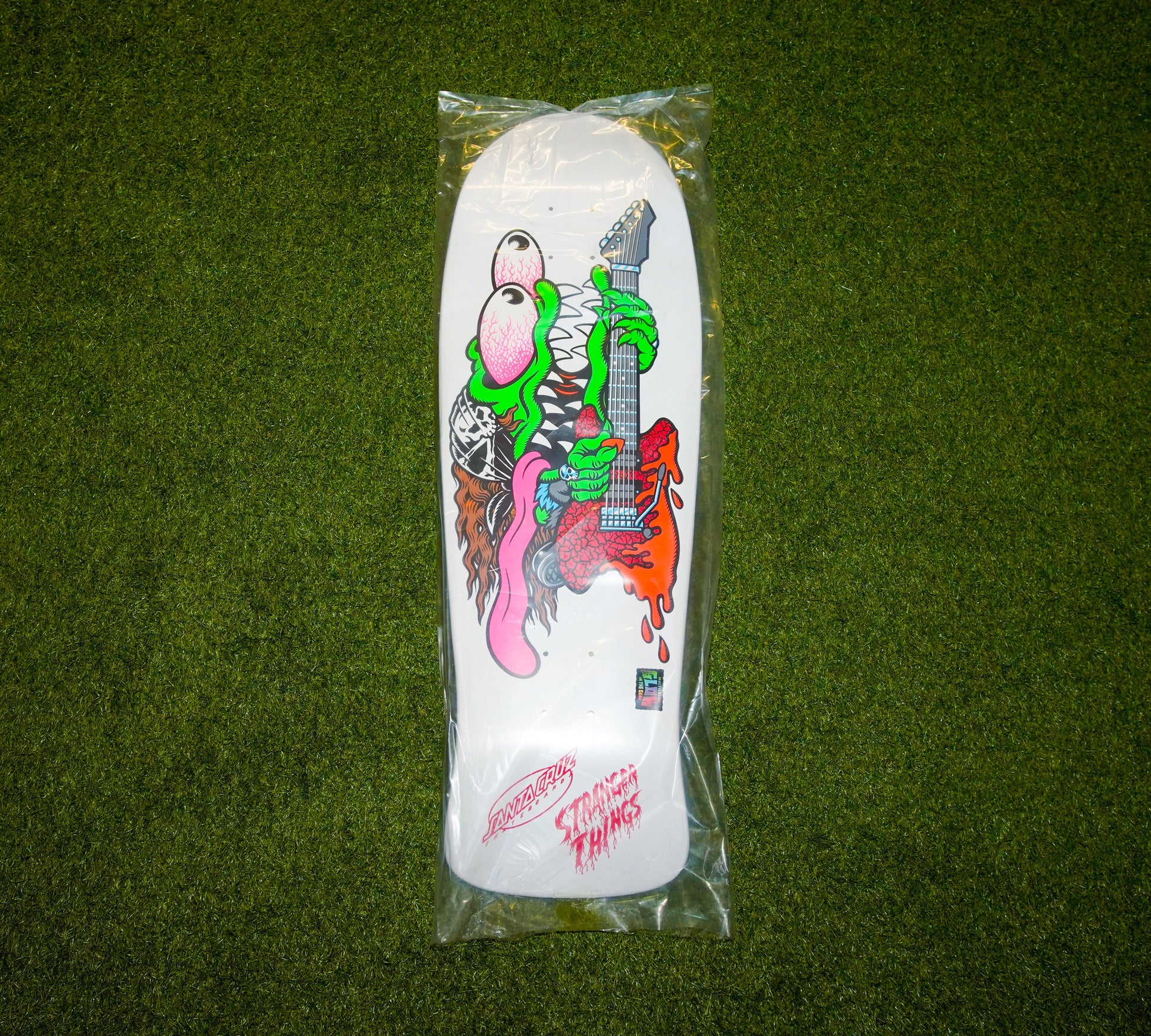 The Santa Cruz x Stranger Things Meek Slasher Eddie Reveal 10.1″ Skateboard Deck celebrates a limited-edition collaboration inspired by the hit series Stranger Things and the legendary Keith Meek Slasher shape. Constructed from 7-ply North American maple pressed individually with epoxy for strong pop, durability, and consistent concave and kick, this 10.1″ wide deck features Old School concave with a continuous tail kick for stable foot placement and classic feel. Its standout multicolor glow-in-the-dark graphics reveal hidden artwork under light activation, blending skate heritage with iconic Stranger Things style.